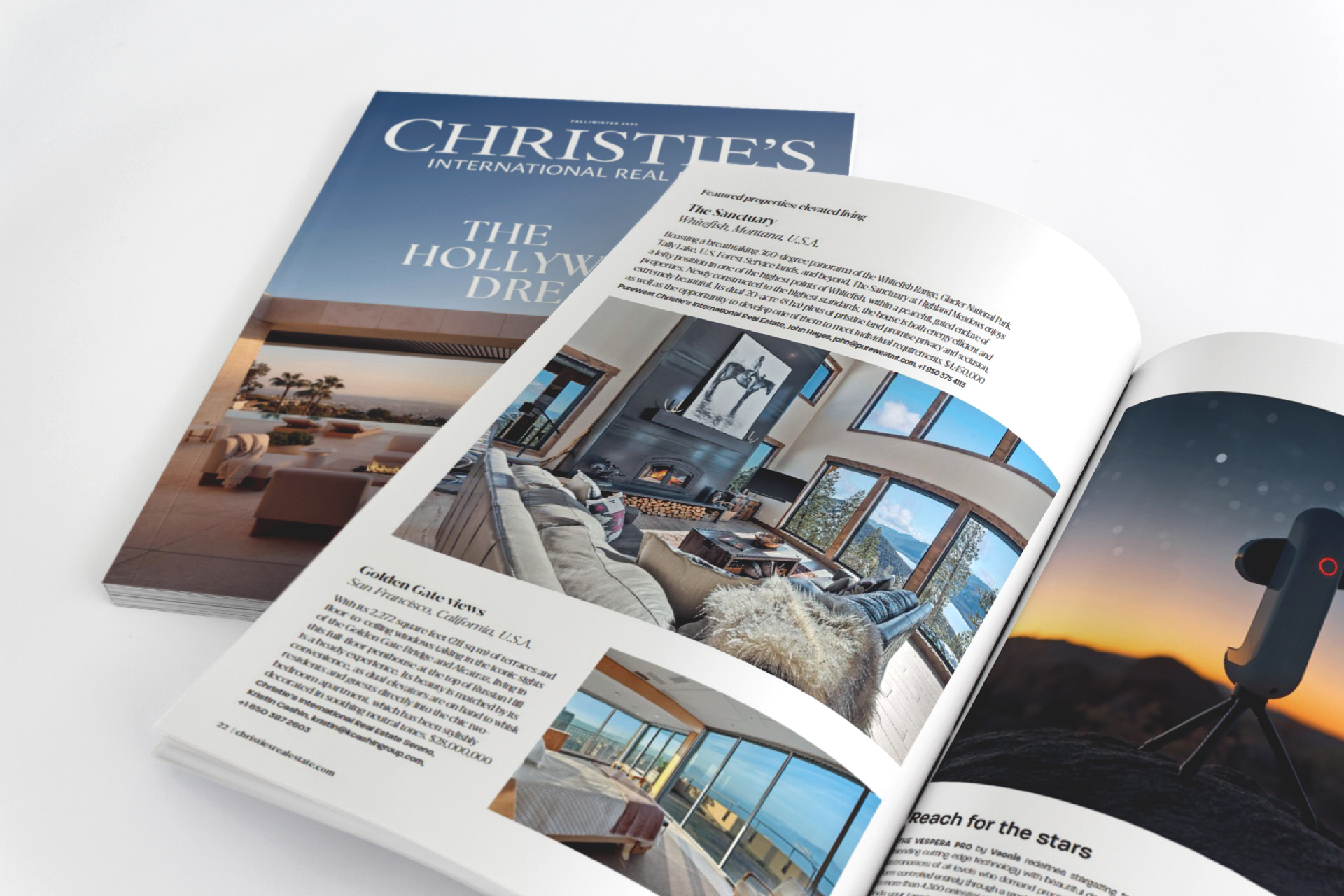 Released biannually, Christie’s International Real Estate Magazine offers a global perspective on extraordinary homes, design trends, and lifestyle experiences, reaching over half a million readers. The Fall/Winter 2025 edition highlights properties from around the world, from Singaporean penthouses with lush vertical gardens to secluded island retreats in Madagascar—alongside PureWest listings that showcase Montana’s rugged beauty and refined luxury.